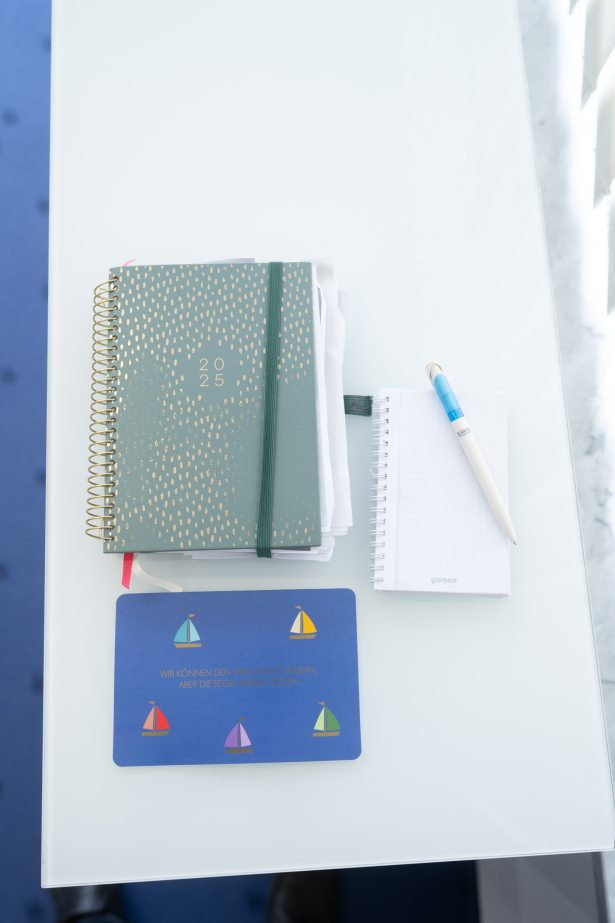 Die Kandidatin hat daraufhin gleich Gegenstände zum Interviewtermin mitgebracht: Ihren Kalender, den sie braucht, um sich zu organisieren, einen Notizblock, auf den sie sich immer alle wichtigen Namen von Gesprächspartner und deren Anliegen notiert. „Ich kann mir das alles sonst ja nicht merken“, sagt sie. Sowie eine Postkarte, die im Umschlag ihres Kalenders steckt. Darauf steht der Satz: „Wir können den Wind nicht ändern, aber die Segel anders setzen“. Dieses Motto motiviert die Kommunalpolitikerin in schwierigen Situationen.