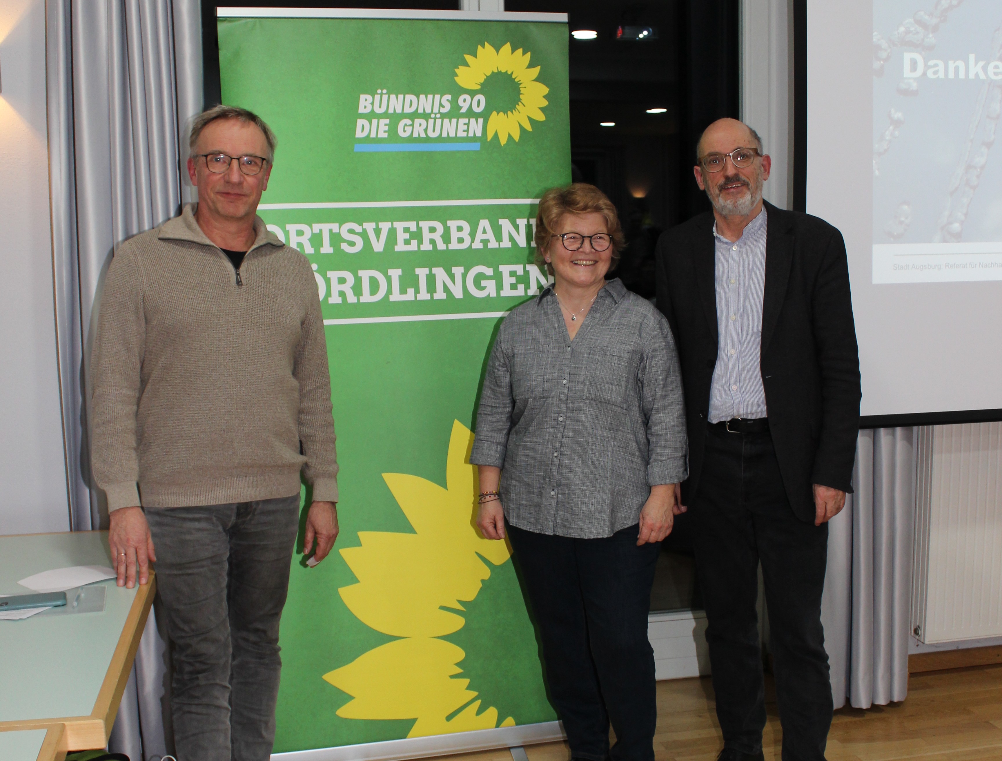 Als Referenten waren Reiner Erben, Grüner Stadtrat aus Augsburg, sowie Dr. Frank Molder, Landschaftsplaner und Sprecher der ARGE Flora Nordschwaben aus Oettingen, geladen.