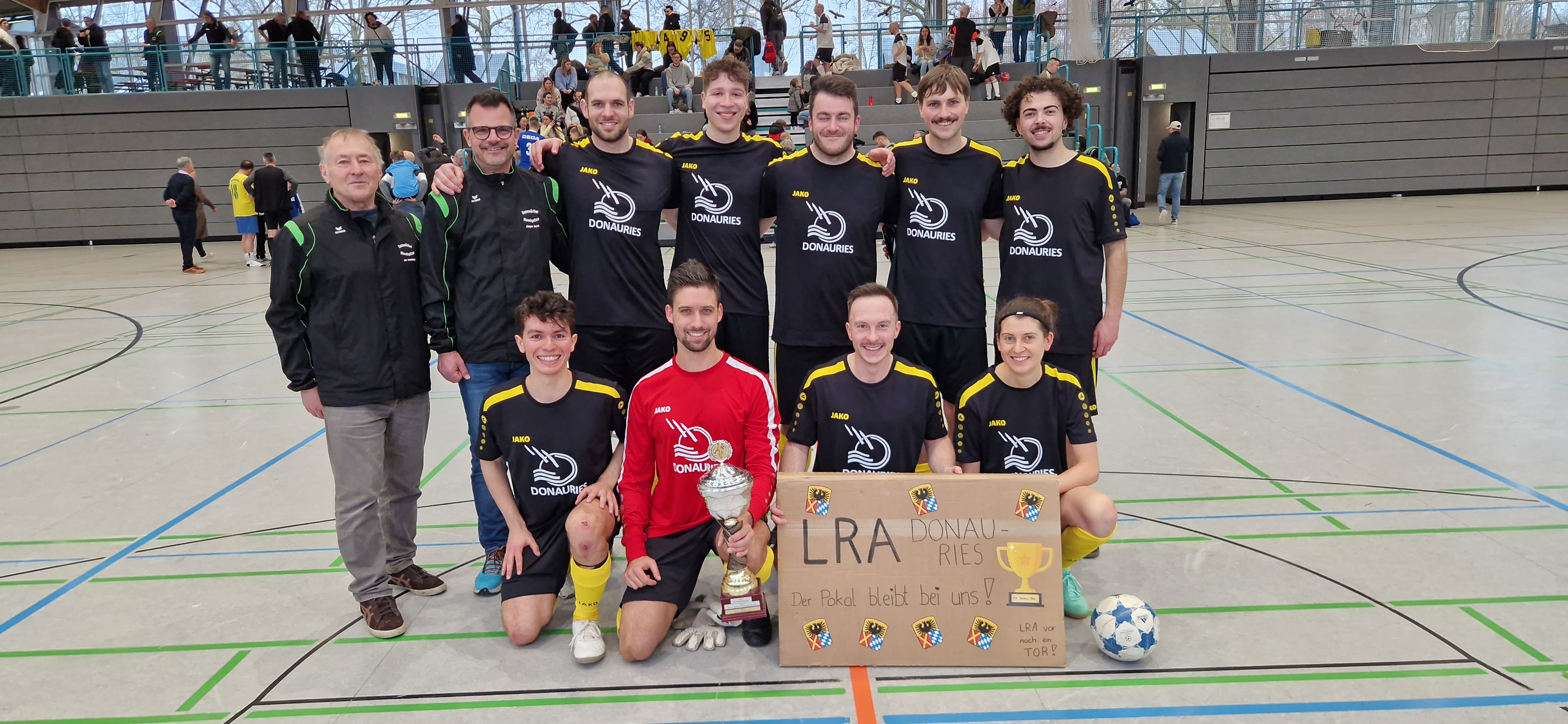 In diesem Jahr gingen an den Start die Landkreisbomber Dillingen, die Polizei Donauwörth, die SpVgg Altisheim, der TSV Harburg, eine Geda Firmenauswahl, eine Mannschaft der Firma AIRBUS Donauwörth, die ausrichtende Mannschaft der Mondspritzer sowie die letztjährigen Sieger des Landratsamtes. Als Schiedsrichter stellten sich Jonathan Schädle sowie Hans Heckel zur Verfügung. Mitreißende Spiele sahen die Zuschauer vor allem in den Platzierungs- und Halbfinalspielen. Hier wurde um jedes Tor engagiert gekämpft, auch wenn der soziale Zweck der Veranstaltung im Vordergrund stand. Im Spiel um Platz 3 setzten sich die Landkreisbomber aus Dillingen gegen die Mannschaft Geda aus Bäumenheim durch. In einem packenden Endspiel zeigte das Team des Landratsamtes, dass es den Pokalgewinn des letzten Jahres unbedingt verteidigen wollte und siegte kurz vor Schluss knapp mit 1 : 0 gegen eine tapfer kämpfende Mannschaft der Polizei Donauwörth. Der Wanderpokal steht damit für ein weiteres Jahr im Landratsamt Donau-Ries.