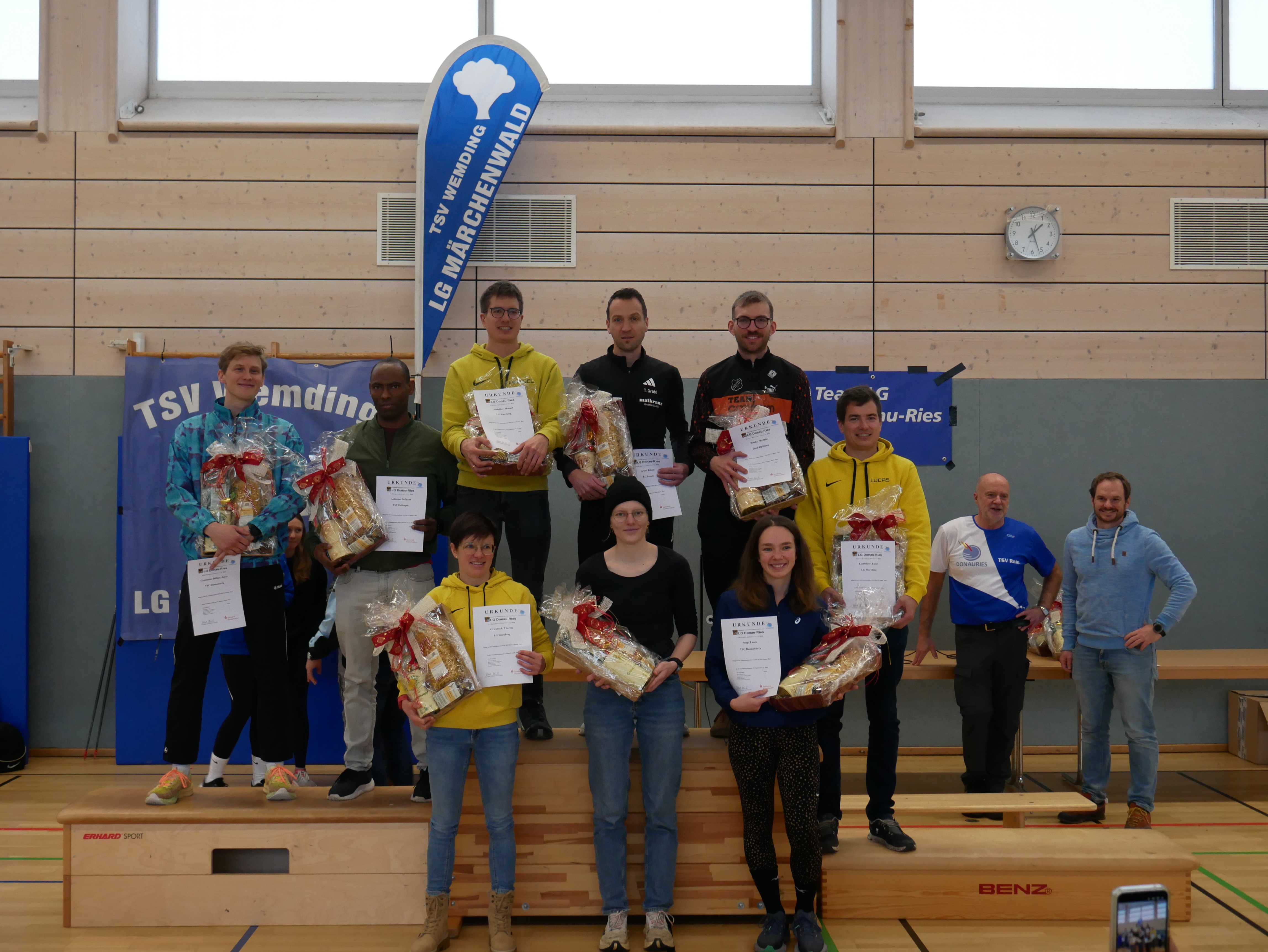 Die Siegerehrung des Einzellaufes und der Serie erfolgte dann in einem würdigen Rahmen in der gut gefüllten Stadthalle Wemding. Für das leibliche Wohl sorgten neben der LG Märchenwald die Mitglieder des TSV Wolferstadt. So konnten die Teilnehmer und Zuschauer die langwierige Siegerehrung, bei welcher neben der Prämierung des Wemdinger Laufes, auch die Ehrung der Seriensieger aller Altersklassen durchgeführt wird, entspannt genießen. Zusätzlich sprach der Vorsitzende der LG Donau-Ries, Robert Kleinle, auch ein Lob für das Durchhaltevermögen einzelner Teilnehmer aus. So erhielten für 100 Läufe Carola Wild und Wolfgang Wiedemann, sowie Fritz Deiß für 125 Läufe eine Auszeichnung.