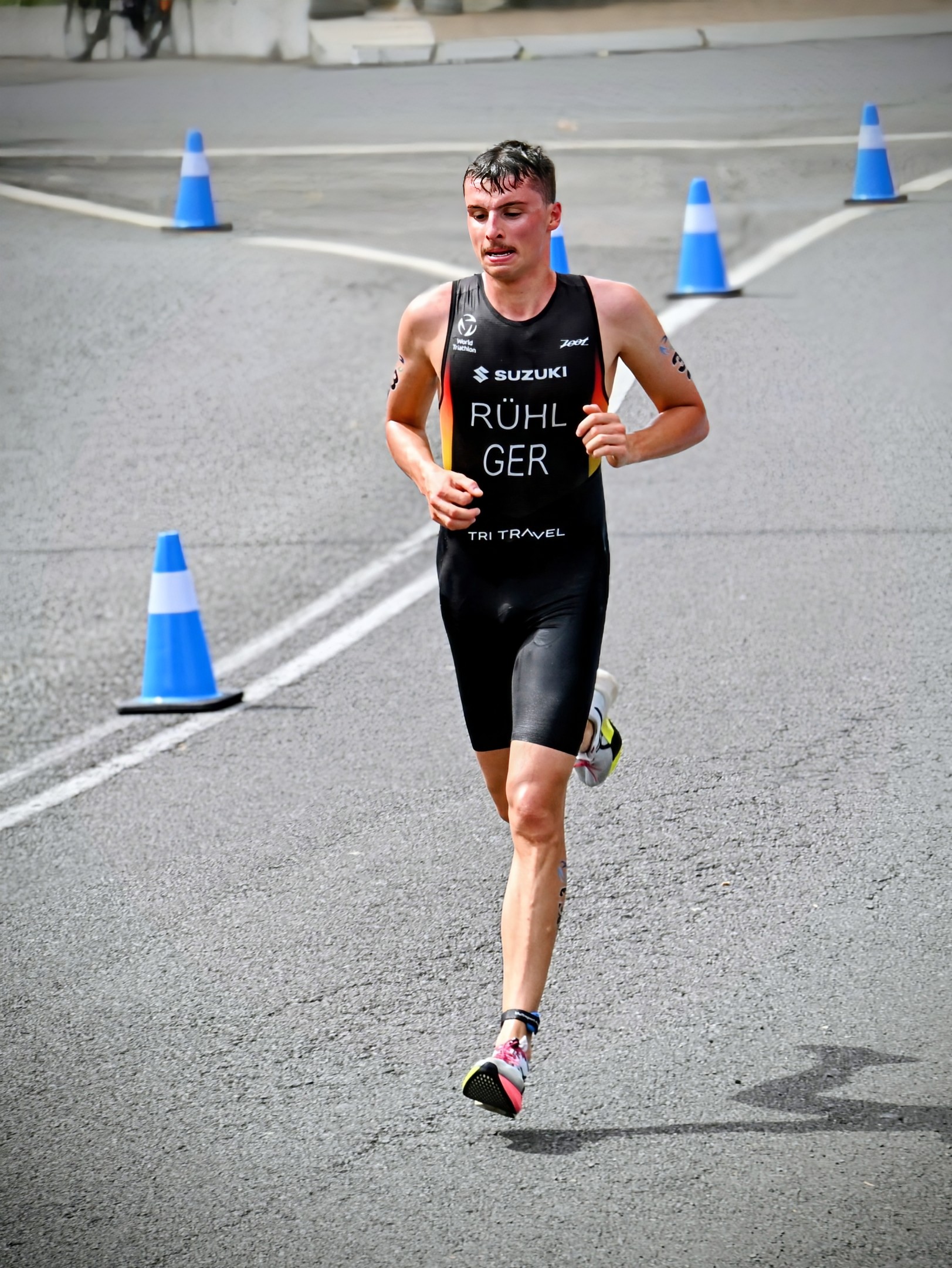 Nach dem Radfahren wechselte er dann als 20. auf die Laufstrecke. Wie schnell in der internationalen Spitze gelaufen wird, verdeutlicht die Laufzeit des französischen Siegers (Tristan Douche) von 14:58 min. Mit einer Laufzeit von 16:28 min konnte sich Luis Rühl im vorderen Drittel des Starterfeldes platzieren.