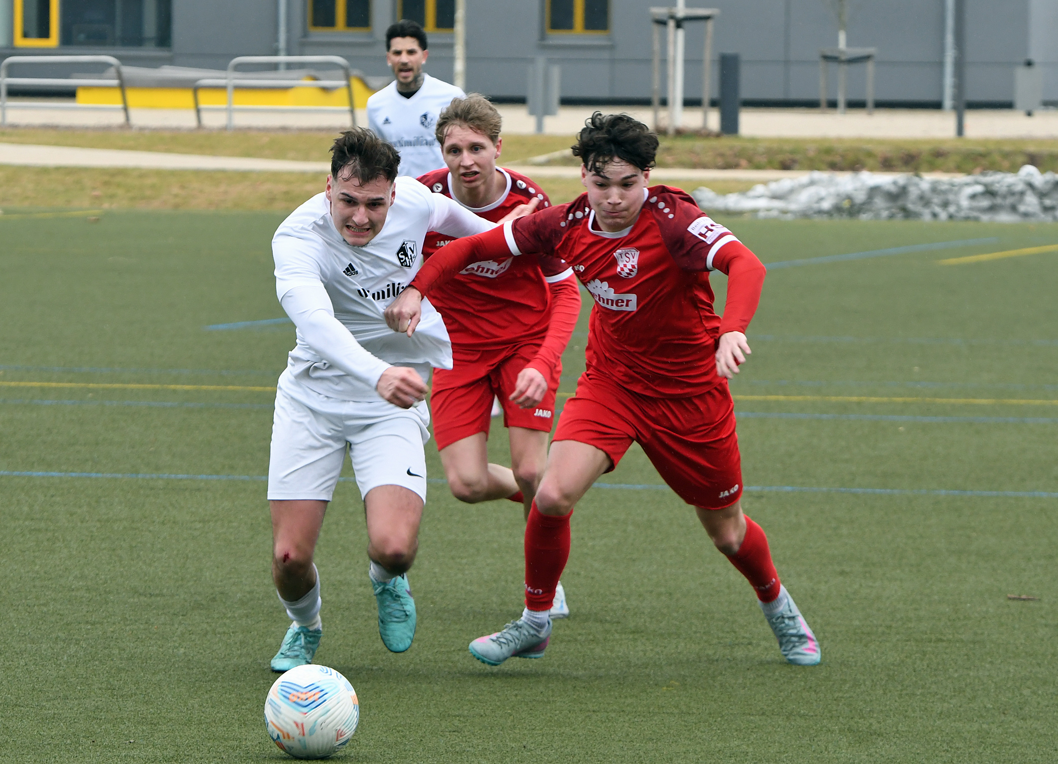 Gegen den Tabellenzweiten der Bezirksliga Schwaben Nord taten sich die Blumenstädter zunächst schwer, setzten sich am Ende aber verdient mit 2:0 durch. Die Anfangsviertelstunde gehörte klar den Hausherren. Rain dominierte das Geschehen zwar optisch, fand jedoch kaum Lücken in der gut gestaffelten Defensive der Gäste, sodass zwingende Torchancen zunächst Mangelware blieben. Mit zunehmender Spieldauer wurde der Bezirksligist aus Haunstetten mutiger und erarbeitete sich eigene Gelegenheiten. Kurz vor dem Pausenpfiff beinahe die Führung für Rain: Lukas Huck fasste sich aus der Distanz ein Herz, doch sein kräftiger Abschluss klatschte nur gegen die Querlatte. So ging es mit einem torlosen Remis in die Pause.