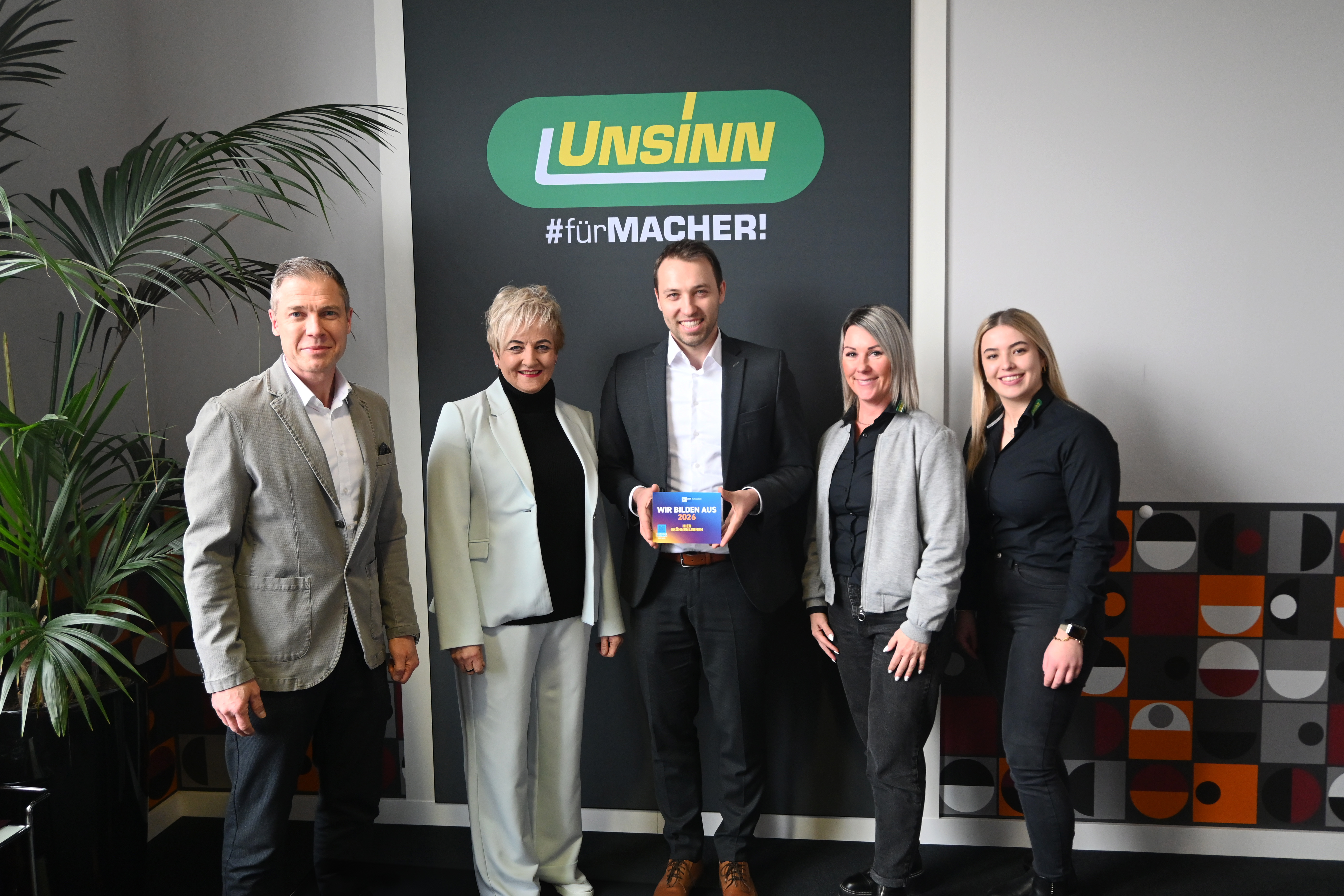Mit einem Signet, das alle IHK-Ausbildungsbetriebe erhalten, macht die IHK Schwaben dieses Engagement sichtbar. Auch bei Firma Unsinn Fahrzeugtechnik GmbH wird das Signet künftig an der Eingangstür zu sehen sein.