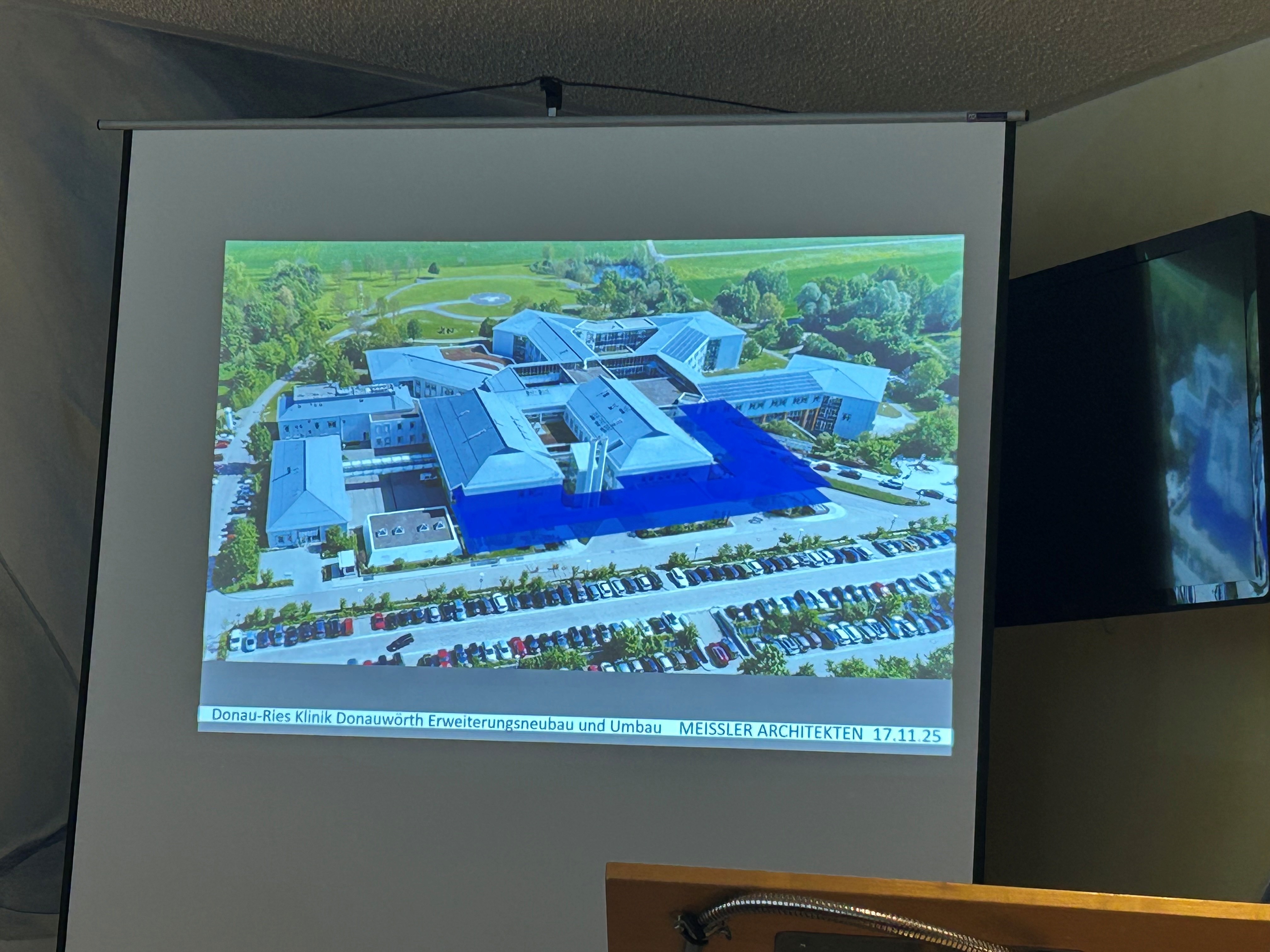 In seiner Ansprache betonte Landrat Stefan Rößle die Bedeutung der Baumaßnahme, die seit vielen Jahren geplant sei und vom Freistaat Bayern umfangreich gefördert werde. „Viele Krankenhäuser kämpfen ums pure Überleben“, sagt Rößle und hob hervor, dass ein solcher Umbau in der aktuellen Zeit keine Selbstverständlichkeit sei. Das gemeinsame Kommunalunternehmen (gKu), zu dem seit 2008 die drei Krankenhäuser in Donauwörth, Nördlingen und Oettingen sowie mehrere Seniorenheime gehören, investiere jedoch bewusst in die Zukunft. Die damalige Fusion sei „ein Glücksfall“ gewesen und habe die Entwicklung der Kliniken entscheidend geprägt. Doppelstrukturen habe man weitgehend abgeschafft, mit Ausnahme der Geburtshilfe an den Standorten Nördlingen und Donauwörth.