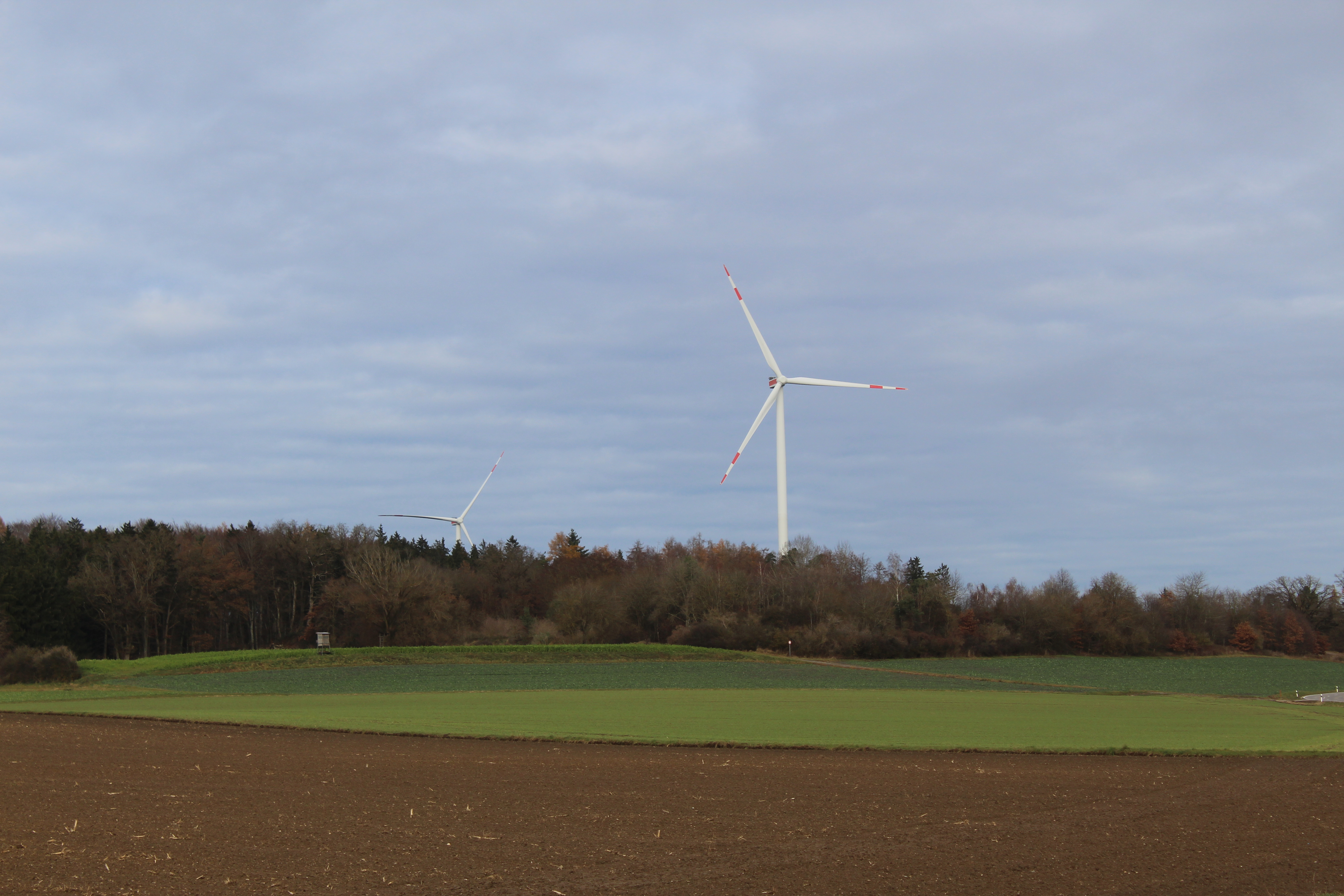 Zwei Windräder stehen bereits, nun werden fünf modernere Windkrafträder hinzugefügt. Bild: Manuel Habermeier
